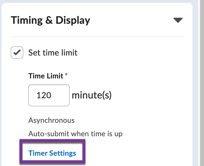 Then, open the “Timing & Display” menu and check the box for “Set time limit.”